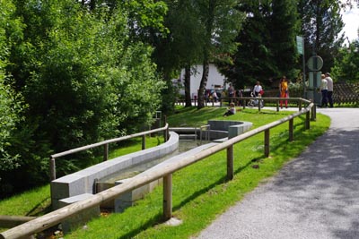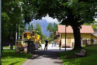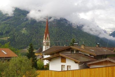 ベルクイーゼルからトラムline6の終点。トラムは1時間に1本。トラムは駅を出ると、すぐに専用軌道になり、森の中を高度を上げながら走っていきます。イグルスの駅の手前には大きなカーブがあり、もう少しでループ線のようになっていました。イグルスは1976年インスブルックオリンピックのリュージュ、ボブスレーの会場になったことから発展したそうです。駅を降り、のどかな道を歩いていきます。本当にチロル!というのどかな道です。パッチャーコーフェルがきれいに見えます。