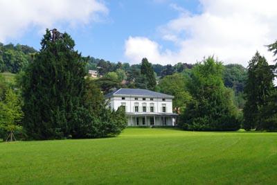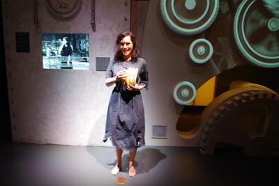 Vevey駅前のバス乗り場から212番のバスで約10分「Chaplin」下車。ここはレマンコを見下ろす高台になっています。ミュージアムの裏はチャップリン公園。広大な広場になっています。ここはチャップリンの家(MANOIR)とSTUDIOの2本立てになっています。まずはMANOIRから見学です。館内に入ったところにチャップリンの人形とウーナさん(his wife)の写真が飾ってあり、ここは絶好の撮影スポットになっています。多くの人がここで写真を撮っていました。もちろん私もチャップリンとツーショットで撮ってきました。ここにいた、スタッフのおばさんがとてもフレンドリーなかたで、気軽に会話に応じてくれます。