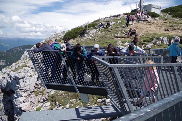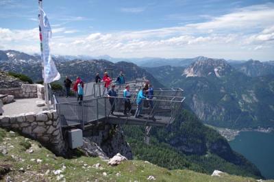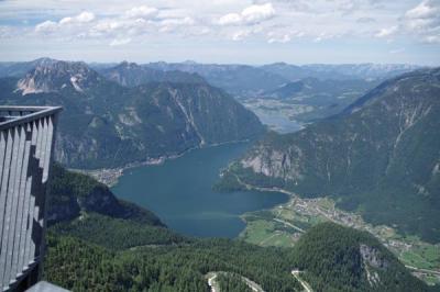 ダッハシュタインの駅からバスとケーブルカーを2本乗り継いだ第2区間から徒歩30分、崖から5本指のように張り出した展望台です。足元は金網になっており、高所恐怖症の人にはお勧めできません。真下にはハルシュタッと湖がきれいに見えます。