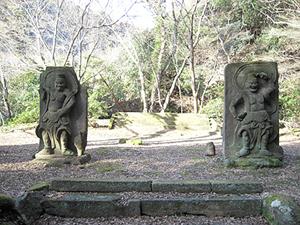 六郷満山開祖の仁聞菩薩が最後の修行をされ、入寂の聖地とされています。しかし、キリシタン大名、大友宗麟の焼き討ちにより全くの廃墟となってしまいました。文禄年間に再建されましたが、明治の火災によって再び消失。現在は寺院があったことを示す石垣と磨崖仁王像がポツンと残されているだけです。往時の大寺院として栄華は見る影もありません。しーんとした風景の中に残る仁王像は物悲しささえ漂ってきます。以前は車では入れなかったのですが、今は林道のような細い道が通じていて、車で近くまで行くことができます。でも、車高の低い車は気を付けて・・・。また、山のほうに上っていくと、奥の院があり、多くの観音像が安置されています。なおも進んでいくと、仁聞菩薩の墓と言われている、五輪塔群に着きます。なおも進んでいくと東不動に到着。とても景色がいいです。ここから下っていくと岩戸寺まで行くことができます。