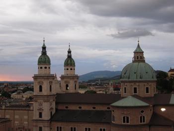旧市街から見る、ホーエンザルツブルク城もいいですが、城から眺めるザルツブルクの街も素敵です。行きはケーブルカーで、帰りは歩いて降りることをお勧めします。帰り道から見る旧市街も素敵ですが、途中、ノンベルク修道院があります。映画、サウンドオブミュージックで主人公、マリアがいた、修道院です。トラップ家の子供達が入ることのできなかった門は開いていて中に入れるようになっていました。