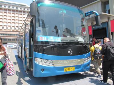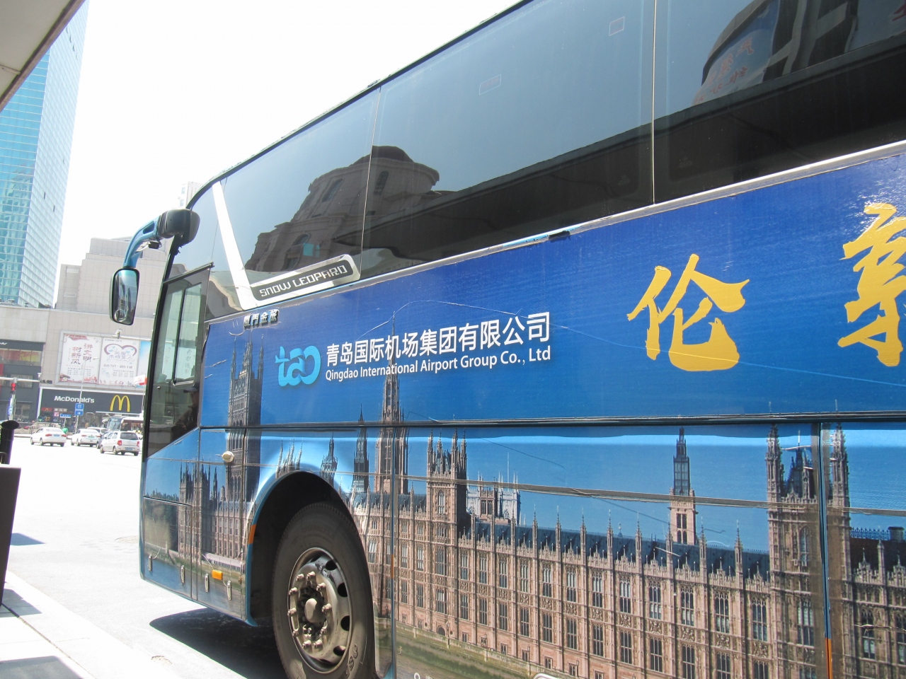 青島流亭国際空港からのエアポートバスは3路線。2号線(702路)は空港~長距離バスターミナル~中山路(天主教会を下ったあたり)~青島駅東広場などを70分ほどで結ぶ路線。一律20元。往路、空港の乗場は案内に従って国内線の方へ、乗り場の手前にある空港内のチケットカウンターで時間指定のチケット購入。中山路で下車、60分。荷物は行先毎に分けられたバスのお腹に収納、番号札とかはありません。