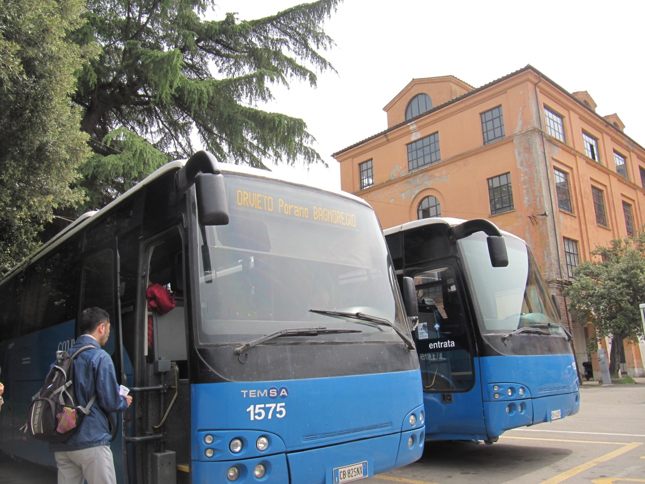 オルヴィエートを観光しない場合は、オルヴィエート鉄道駅前のバス停から乗車で良いのですが、オルヴィエートに宿泊、観光後は、わざわざケーブルカーで鉄道駅まで下りなくても、旧市街のバス停からバーニョレッジョ行きに乗車できるので便利です。私の乗ったバスは、旧市街~駅~バーニョレッジョの順でした。