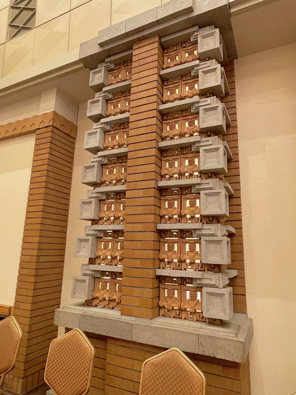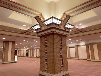 政界を巻き込んだライト館保存運動もあり、随所にライト館のスクラッチタイルやテラコッタ装飾等が復元されている。