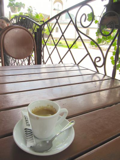 あらかじめルーマニアレイで支払えるか確認し、テラス席でコーヒー(エスプレッソ)をいただきました。