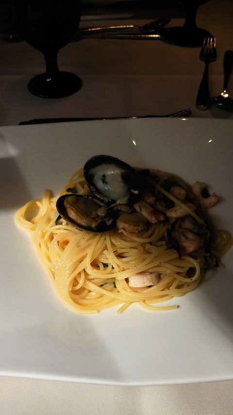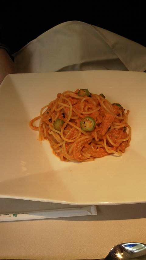 今回は1575円のコースで前菜、スープ、パスタ、デザートワゴンから2品、ドリンクです。今回のペペロンチーノパスタは当たりで美味しかったです。