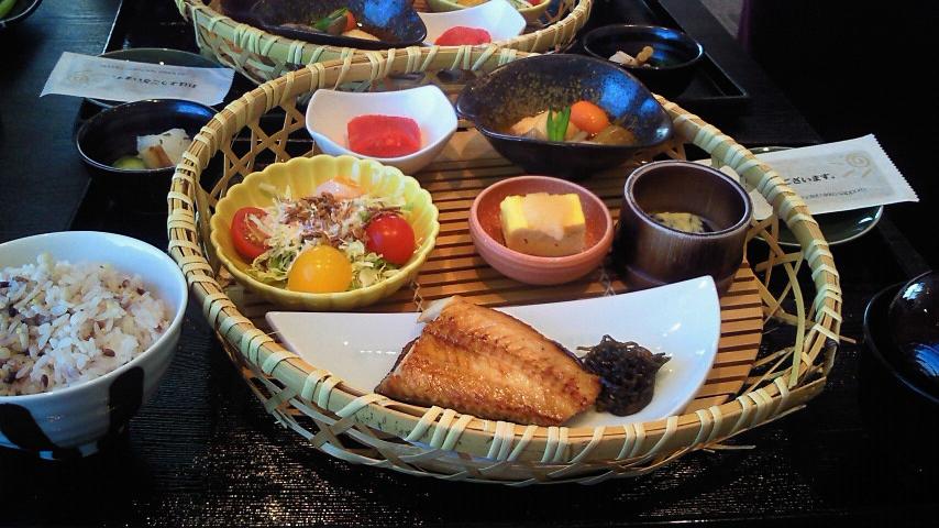 お膳に少しずつ料理が入っています。焼き魚はホッケでした。