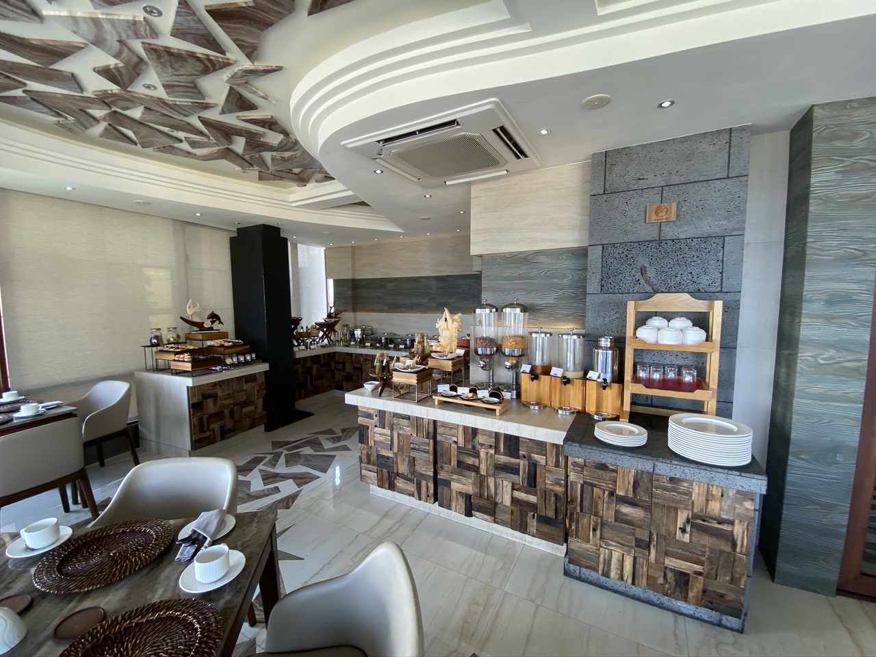 朝食はまあまあでした。最上階のレストランからの眺めは良いです。