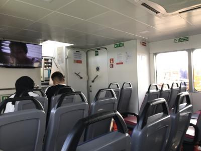 船は大きくありませんが、シンガポール海峡は凪で、ほとんど揺れませんでした。また、シンガポール海峡には、多くの大型船舶が碇泊していて、フェリーはそれらを避けて縫う様に走航していたのでスピードも余り出していない感じがしました。