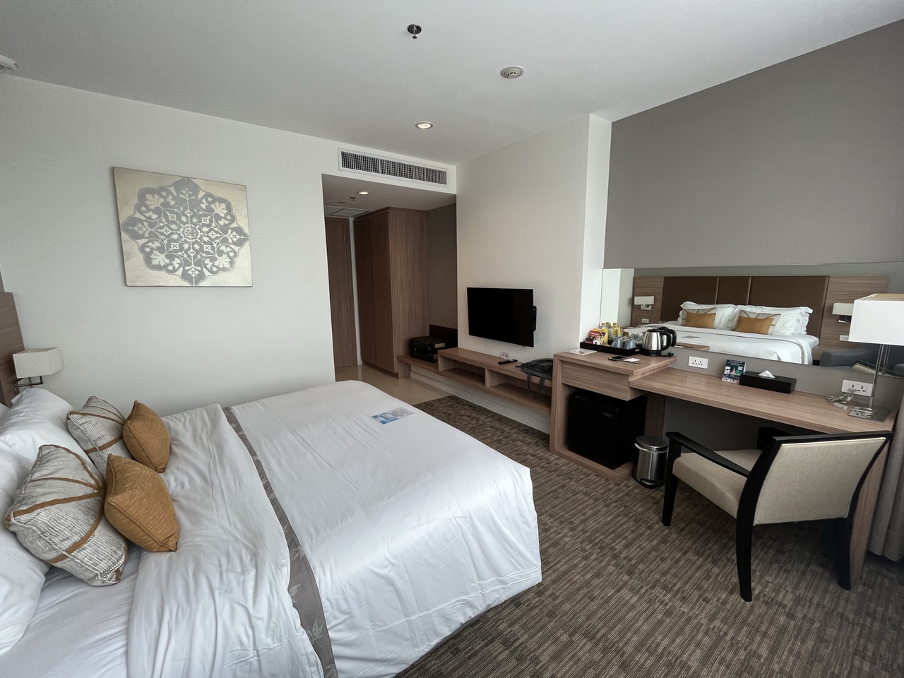 ベッドのクッションの硬さもちょうど良く寝心地は良かったです。部屋にはセーフティーボックスは設置されていませんでした。