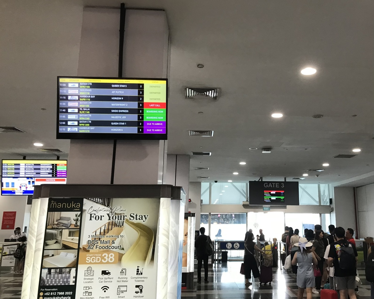インドネシアからシンガポールへの出稼ぎルートのひとつとして、チャンギまでの直行便がない場合、インドネシア国内線でこの空港まで来て、フェリーでシンガポールに渡るようです。