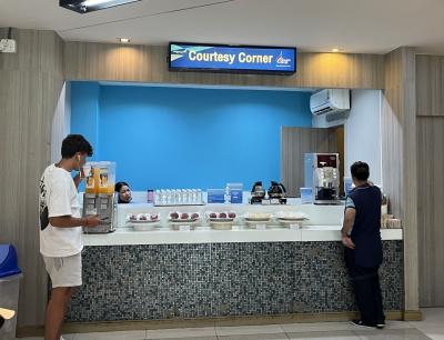 また、エコノミークラスの乗客に対しても搭乗待合室にキオスクが設置されていて、無料の飲み物やスナック類のサービスがあります。他のフルサービスキャリアにもここまでのサービスはあまり無いかと思います。(但しチャンギ空港では、このサービスはありませんでした。)