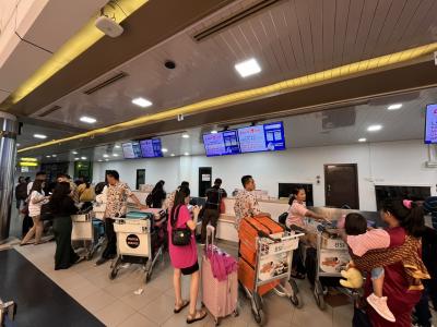 出稼ぎを終え故郷に帰る乗客は大量の荷物を持っています。シンガポールで得た土産物でパンパンになったケースが空中分解しないように、荷物のラッピング•マシーンがひっきりなしに稼働していました。- 旅行時期
