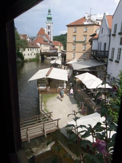 部屋の窓からの眺め。お城は川向こうにあるので、この角度からだと見えない...