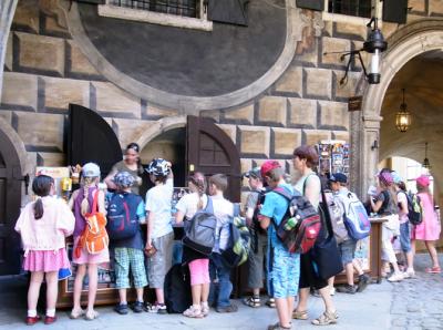 お城見学に来ていた子供達、お土産屋に群がる。