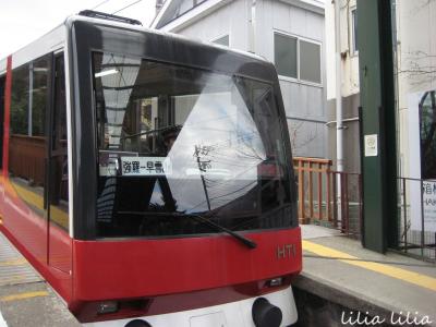 ケーブルカーは15分に1本程度しかないのですが、箱根湯本駅では行列で席の取り合いに忙しいです。