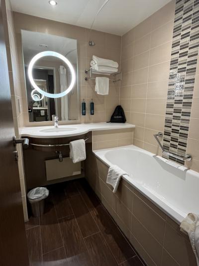 サッカー観戦のため近くのホテルを探していたところ口コミが良かったので1泊利用しました。ホテル周辺には旧市街ほどお店は多くないので期待はしない方が良い。大型ショッピングモールがあるが、閑散としていた。ホテルは全体的に暗い雰囲気ですが、お部屋はとても広々としていて過ごしやすかったです。バスルームも広く、水圧良かったです。サッカースタジアムまで徒歩10分以内で便利でした。