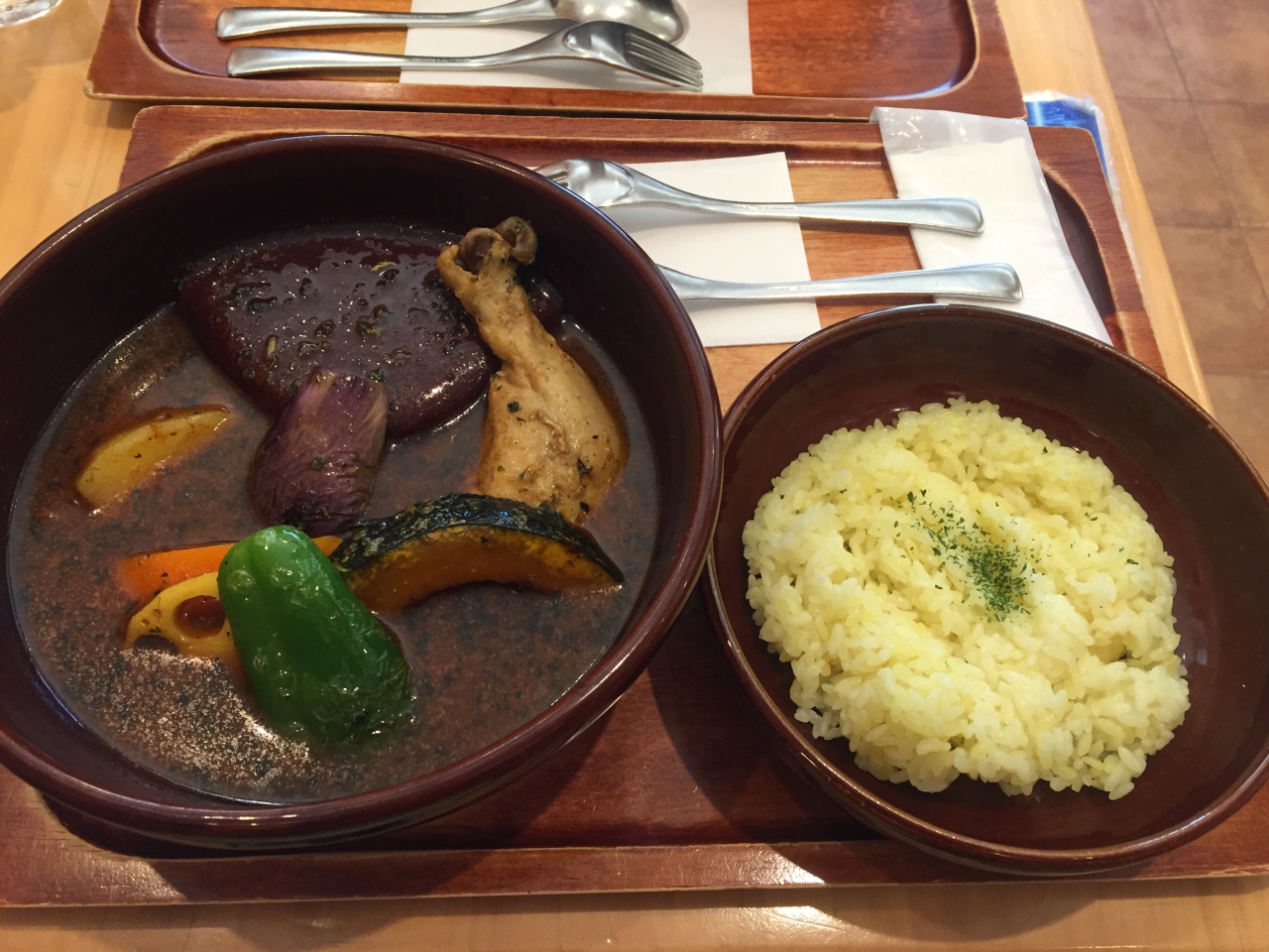 ターメリックライスは少なめにすると値引き、多めにするとプラス料金になります。