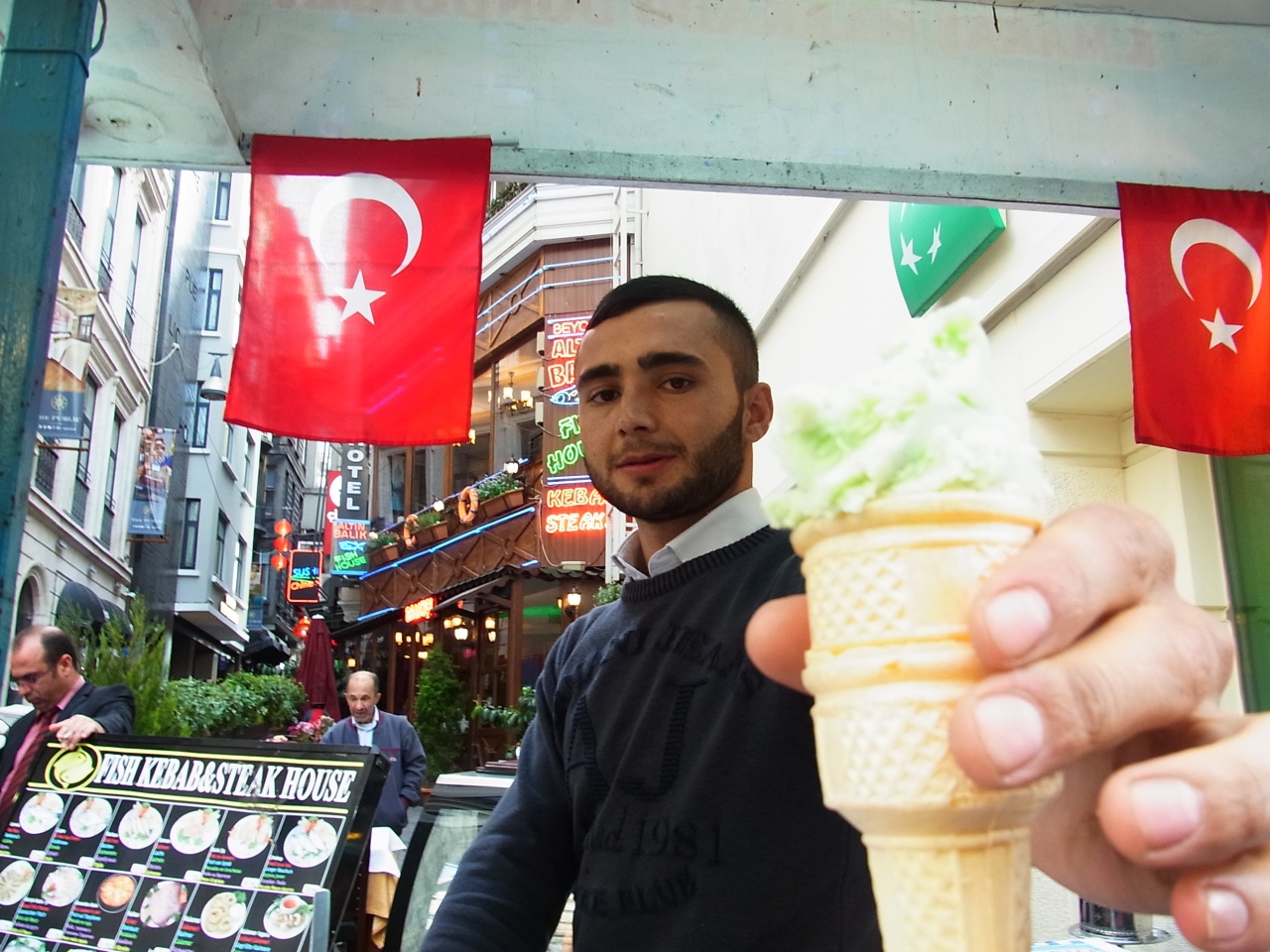 タクシム広場からすぐあり、ガラタ塔までお店が果てしなく続きます。 メインストリートの小路にはまたレストランやケバブ屋さんが並んでいます。スタバ、マクドナルドなどのお店からトルコアイス屋さん、お土産屋さん、H&Mなどもあります。 トルコアイスと お米が入ったカキを食べ歩きして、大満足!!