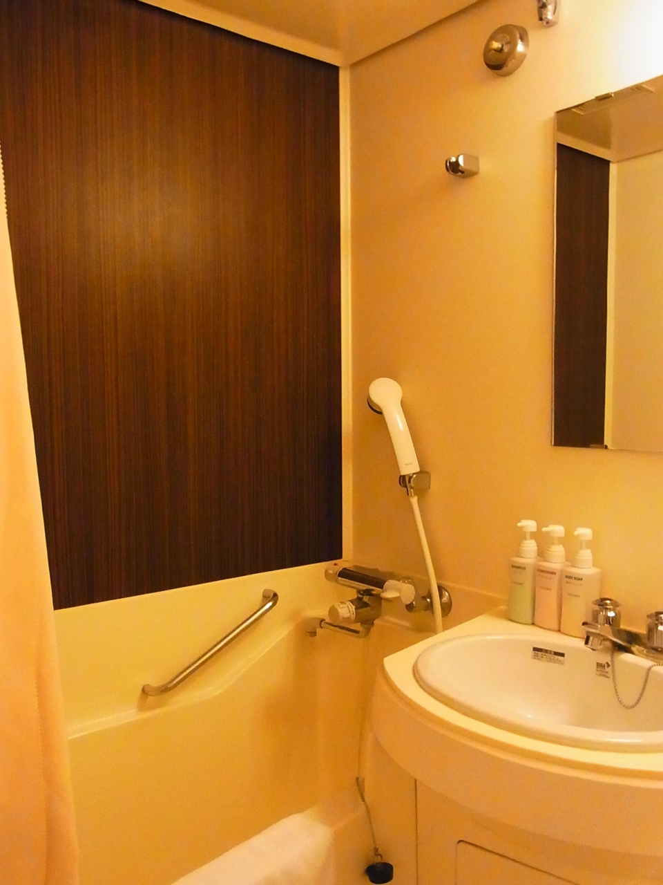 お部屋はシングルで、非常に狭く、バスルームもシンプルすぎ、水圧弱め。