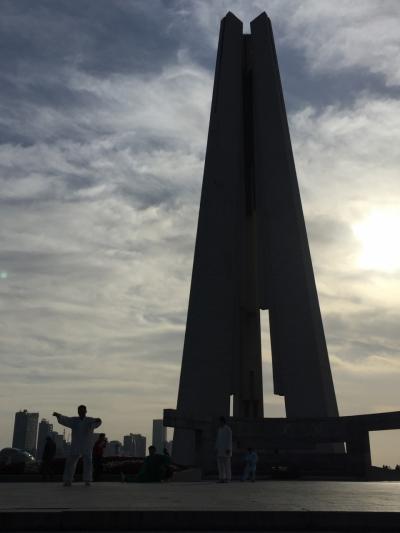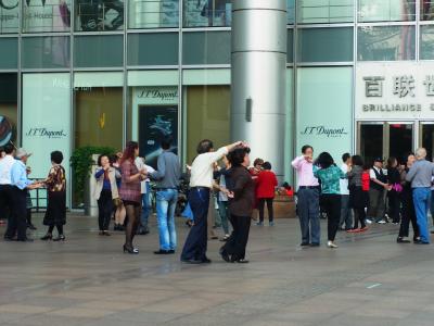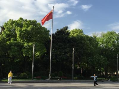 朝はTV番組で見た通り(笑)どこからともなく集まって太極拳や社交ダンス、一人で剣の修行、街頭を使ってネットを張りバドミントン=3