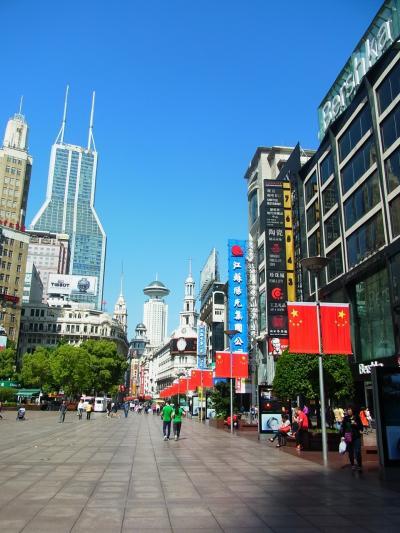 両側にはショッピングセンターや飲食店が数多く並んでいる、上海のメインストリート。