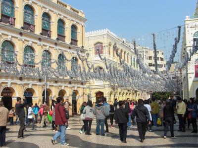 クリスマスツリーがあったり、謎のマスコットが展示されていたり、その季節ごとに面白い感じです。ガイドブックのような写真をおさめたかったけれど、早朝の人がいない時を狙わないと無理ですね。かわいらしい建物が並び、一瞬タイムスリップ(笑)マクドナルドも目立たない感じで好感持てます。エッグタルトやおつまみビーフ、ハーゲンダッツ、トルコアイスなどの飲食店、スワロフスキーや駄菓子屋さん、いろいろなお店があって バラエティ豊かです。