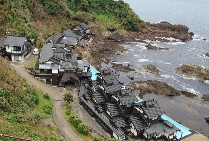 部屋の露天風呂、共同の露天風呂、貸切風呂とも開放感あり、日本海を眺めながらの入浴気持ち良かったです。夜はライトアップされいささかやりすぎ感がありますが綺麗ではありました。