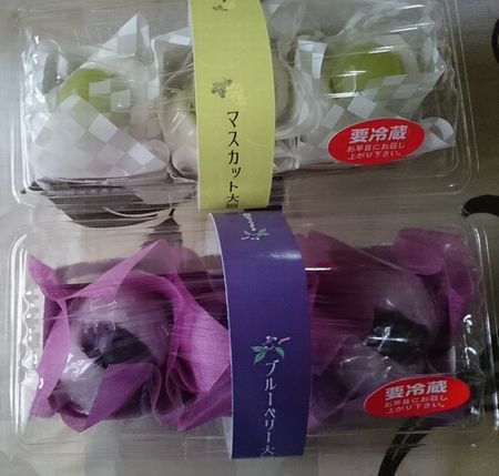宇都宮市郊外にある和菓子店で、こちらの「朝搗き大福」が美味しとの事で伺いました。残念ながら売り切れでしたので「ブルーベリー大福」と「マスカット大福」を購入しました。ちょっと餡の甘さが強く、好みのフルーツ大福ではなかったです。