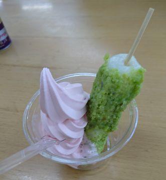 安達太良サービスエリアで休憩をした際に、こちらのフードコートで「ずんだだんご&ももソフト」を食しました。たっぷりのすんだ餡にくるまれたお団子、ももの香りが感じられるソフト、組み合わせ的には微妙でしたが美味しく頂きました。