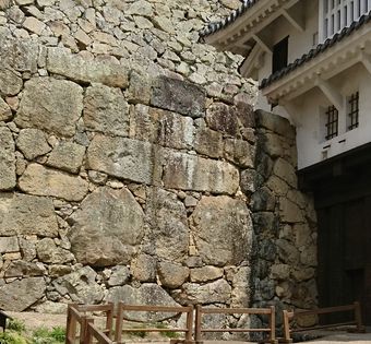 姫路城の西の丸を見学し終え帰る途中「黒田官兵衛ゆかりの石垣」の案内板が目に留まりました。「天守の庭」(礎石)の奥にありました。大小様々な形も揃わない石が積み上げられていました。野面積みという自然の石を積みあげて築いた石垣です。秀吉時代の石垣、時代を感じさせます。