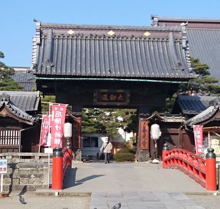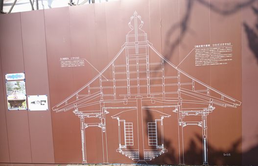 善光寺本堂正面に向って左側に、1759年建築の木造の経蔵が建っています。現在修復工事中で、経蔵の周りには囲いがしてありました。2016年度末までには、修復工事が完了する予定だそうです。後1年ぐらいかかりますね。
