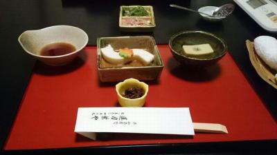 知恩院近くにあるおとうふ料理のお店です。予約して伺いましたので、個室のテーブル席に案内されました。夜はとうふ料理コース3,500円(税抜)のみです。いろいろなとうふ料理が楽しめ、おいしく頂くことができました。料理は待たされることなくスムーズで、良いペースで出されました。このお値段でしたらコスパはいい方だと思います。ただ、トイレが一つしかなく、かなり待つことになったことが残念でした。