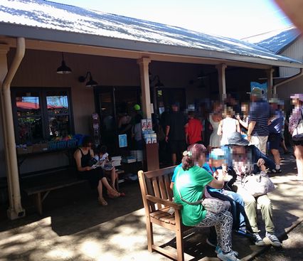 ハレイワの街を走行中に目に留まった駐車場、その駐車場が最近再開発により新しくオープンしたショッピングモール「ハレイワ・ストア・ロッツ」の駐車場でした。広い駐車場ですが、ほぼ満車でした。新しい建物が並びきれいに整備されていますが、雰囲気はオールドハワイでした。「マツモト・シェイブ・アイス」があり中庭に長蛇の列ができていました。