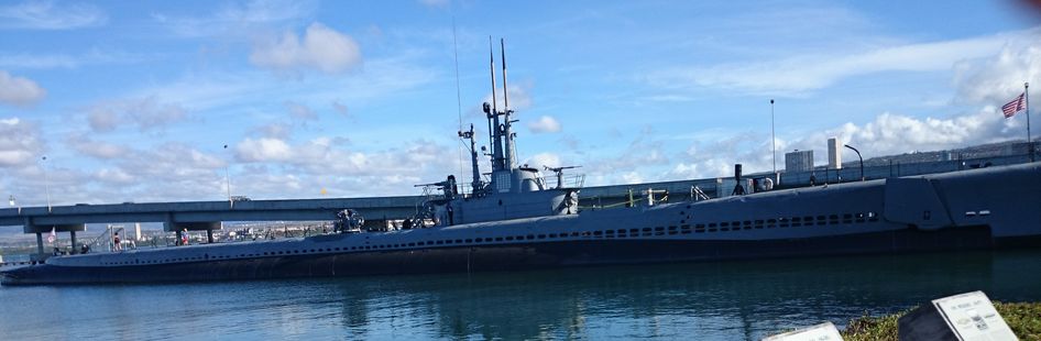 パールハーバーに係留していて、向かいに資料館があります。どちらも入口で日本語オーディオを無料で貸し出してくれます。桟橋を渡り潜水艦の中に入ります。艦内の天井は低く幅も狭く、この中での任務はかなり過酷だったと思います。当時の潜水艦の中を見ることができたのは貴重な体験でした。