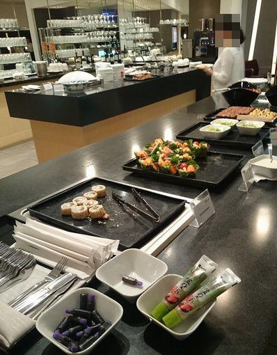 夜の便でのフライトでしたので、ラウンジは比較的すいていました。アルコールやソフトドリンク、軽食もあり、フライト前に頂く分としては十分だと思います。搭乗ゲートにも近いので、搭乗時間ぎりぎりまでラウンジで寛ぐ事ができました。