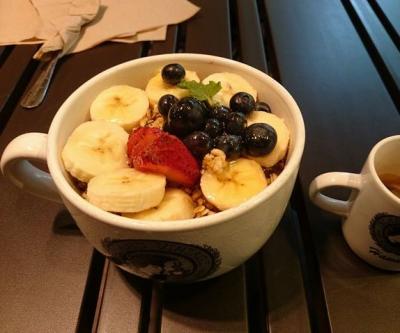 ロイヤル・ハワイアン・センターC館2階にあります。午後3時頃に行きましたが、並ばずに注文することができました。席も少し待って店内の席を確保することができました。日差しがまだ暑い時間帯だったのでよかったです。アサイボウルですが、ひんやり冷たいアサイ、食感がいいグラノーラ、蜂蜜やバナナの甘さが合わさって美味しかったです。二人で1個をシェアしましたが十分でした。