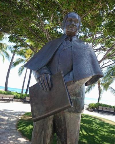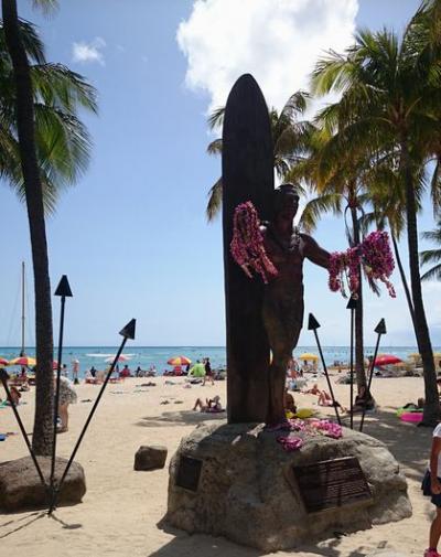 ハワイ人初のオリンピックの金メダリストで、「近代サーフィンの父」と呼ばれたハワイの英雄です。ワイキキビーチを背に建ち、レイもたくさんかけられている銅像を前に、記念撮影をする人も多くハワイに来たんたど気持ちが盛り上がる存在です。