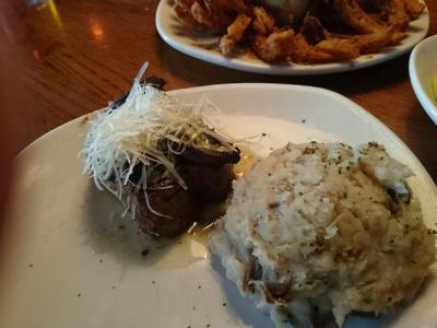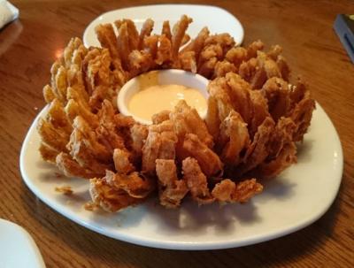 パールハーバーに行く途中バスの中から店舗を見つけ、久しぶりに「ブルーミン・オニオン」が食べたくなり帰りしなに寄りました。アラ・モアナ・ブルーバード沿いにある、ステーキのチェーン店です(日本にも出店してます。)「ブルーミン・オニオン」ビールに合い美味しいですが量が多いです。食べきれなければ持ち帰ることができます。