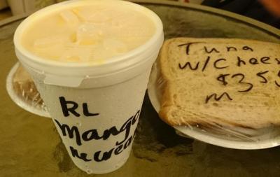 ビーチウォーク沿いにある小さなお店です。最初は気が付かず通り過ぎてしまいました。マンゴーアイス美味しかったです。量が多く一人では食べきれないので、小さいサイズがあると買いやすいのですが…。ツナサンドは塩味がちょっと強かったです。お店の前にイスが数脚置いてありますので、座りながら食すこともできます。