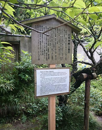 明月院の総門から参道をまっすぐ本殿に向かわず、参道に入ったら左手奥に進んでください。第5代執権北条時頼の廟所と墓所があり、近くには石碑も立っています。なかなか気が付かない場所ですが、このあたりも紫陽花がきれいです。今回は、林の中を駆け巡る、リスを見ることができました。