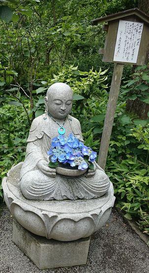 本堂を左方に進み開山堂の右手にあります。今が見ごろの紫陽花が生けてありました。