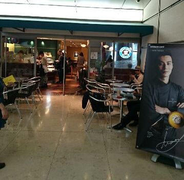 日本テレビタワーの2階フロアーにあります。入口入ってソファ席、窓際にカウンター席があります。この日は満席というか、おひとり様が多く二人で一緒に座る席が確保できず、店内入口手前のテーブルが空いてましたので少しだけ休憩しました。ちょっと落ち着かなかったです。
