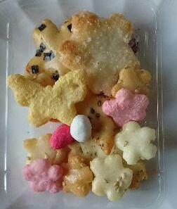さくら・ちょうちょ・うめのおかき、そして紅白の砂糖大豆とひとつひとつ確認しながら食べました。季節限定のお菓子を楽しむのもいいですね。- 旅行時期