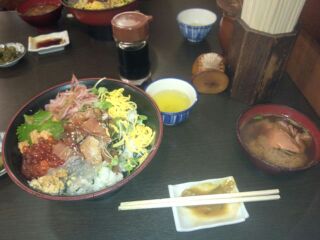 わいわい丼を食べましたが、お刺身がたくさんのっていました。