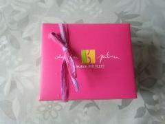 パールシルバーの箱で蓋の部分にマグネットがついています。