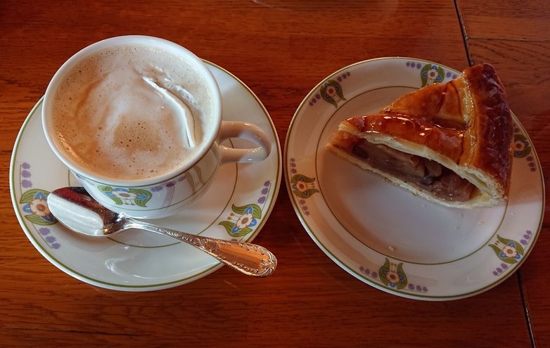 ロイヤルミルクティーとアップルパイをいただきました。ロイヤルミルクティーは生クリームが上にのりほんのり甘く濃厚な紅茶と合い美味しかったです。りんごがぎっしり詰まった懐かしさを感じさせるアップルパイとも合い美味しくいただきました。- 旅行時期