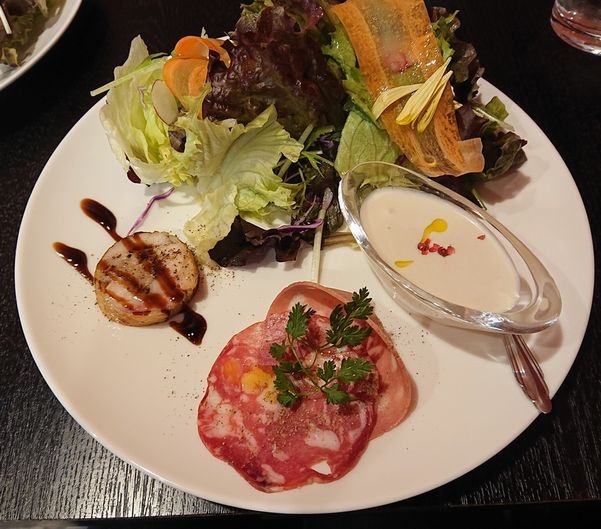 ランチメニューはスープ・パスタ・ハンバーグ・ステーキの中から選び、ミニサラダ・フォカッチャ・コーヒーor紅茶付きです。パスタは生パスタ、サラダは前菜盛り合わせにプラス料金で変更できます。ドルチェも追加料金で付けることができます。メインのパスタは勿論、前菜の特にスープは好みでドルチェも美味しかったです。雰囲気よく美味しいランチがいただけました。ただ、ステーキを頼まれた方多かったのか臭いが気になりました。- 旅行時期