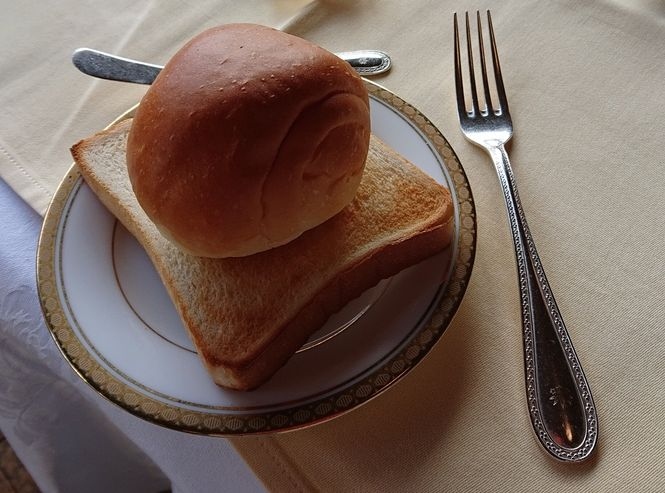 朝食はお皿に載せられたパンにちょっと笑ってしまいました。