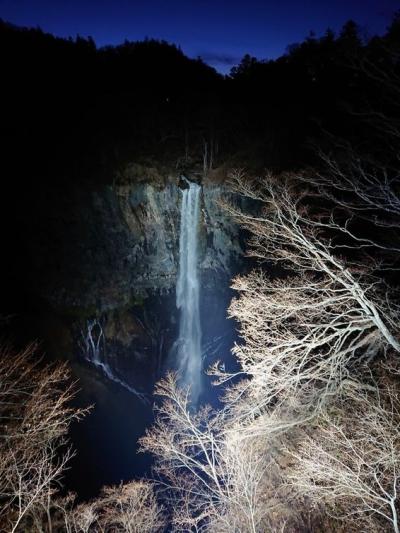 夜には無料のライトアップされた華厳の滝を見学することのできるバスツアーがありました。